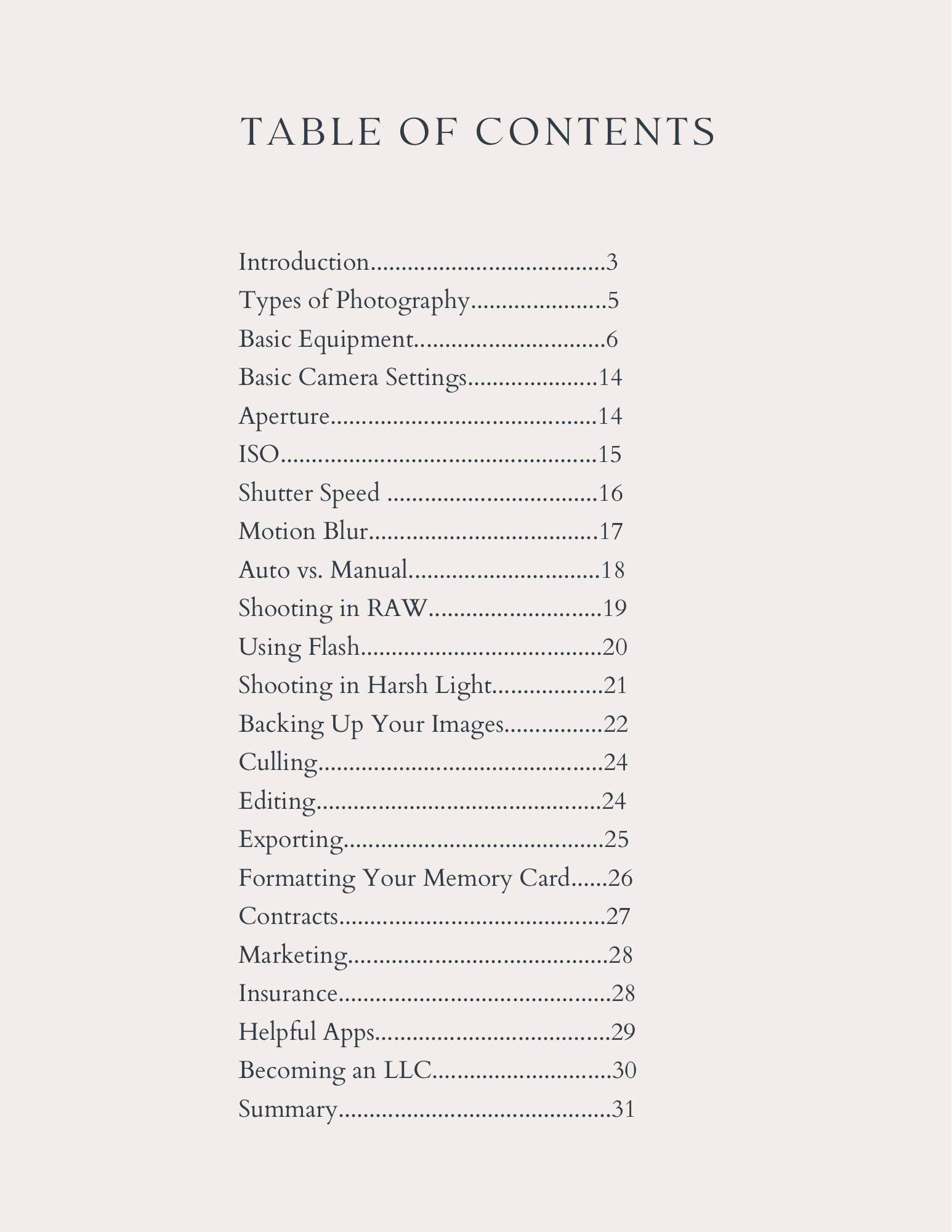 Have you ever been curious about photography but don’t know what it takes to get started? This 31 page guide outlines all the tools you need, covers basic camera settings, contracts, breaking down auto vs manual, shooting in RAW & more!